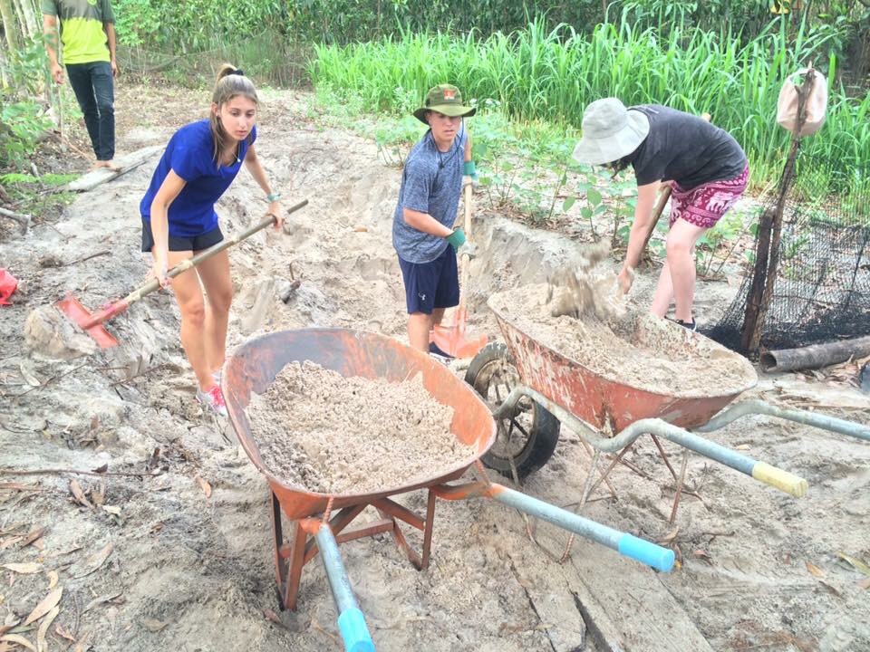 After a long day of traveling, we finally arrived at the host village we have been waiting to see. We were greeted by the smiling faces of the Youth Union organization that we would be working with and we spoke with a few of the Youth Union members over dinner, then went off to bed early to prepare for our first day of work.